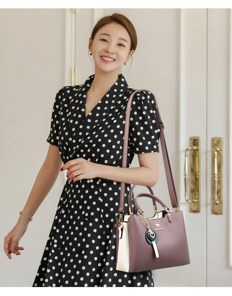 Large Capacity PU leather color matching women's shoulder bag Sewing line business crossbody bags for women Fashion new Handbag