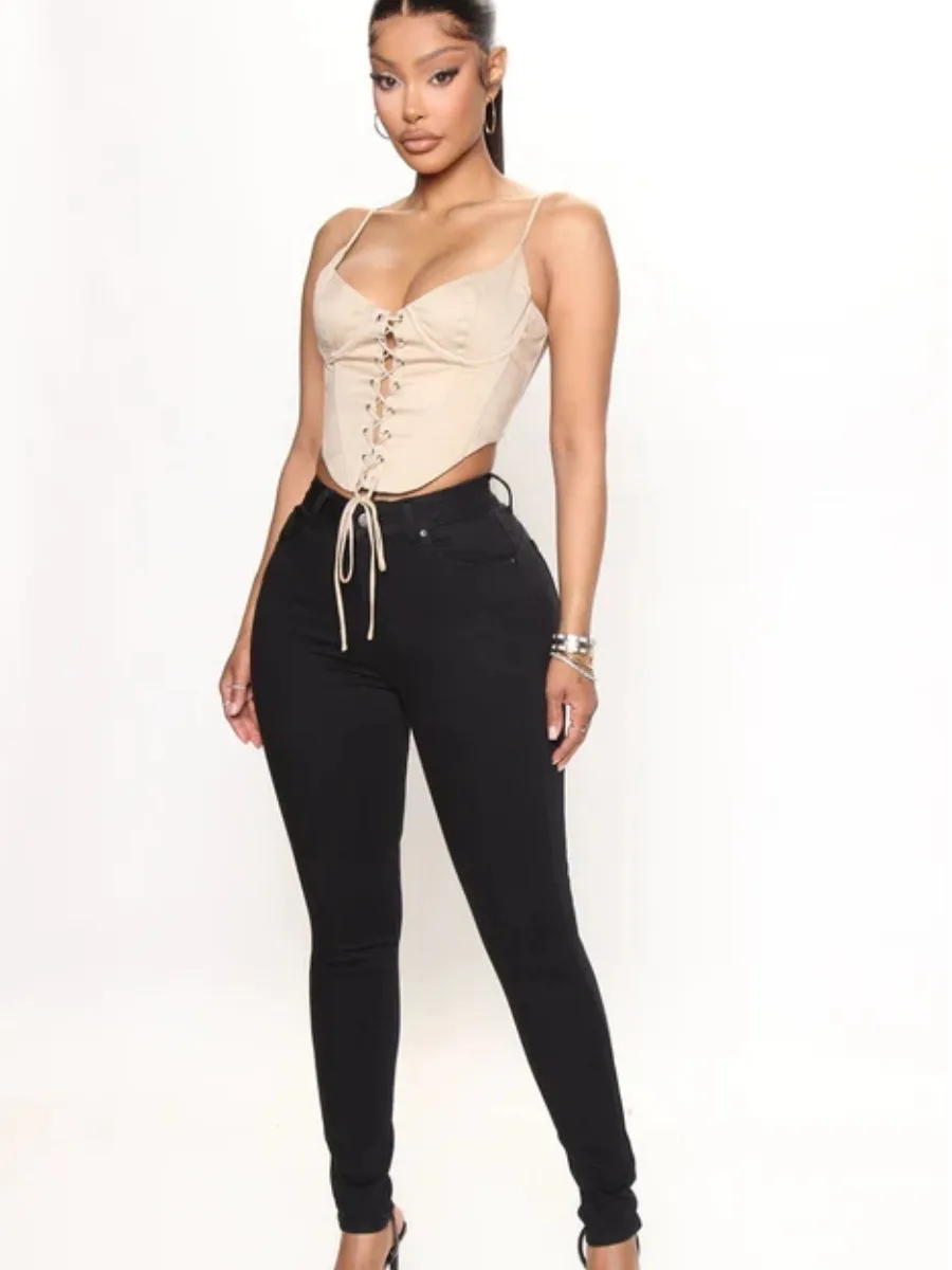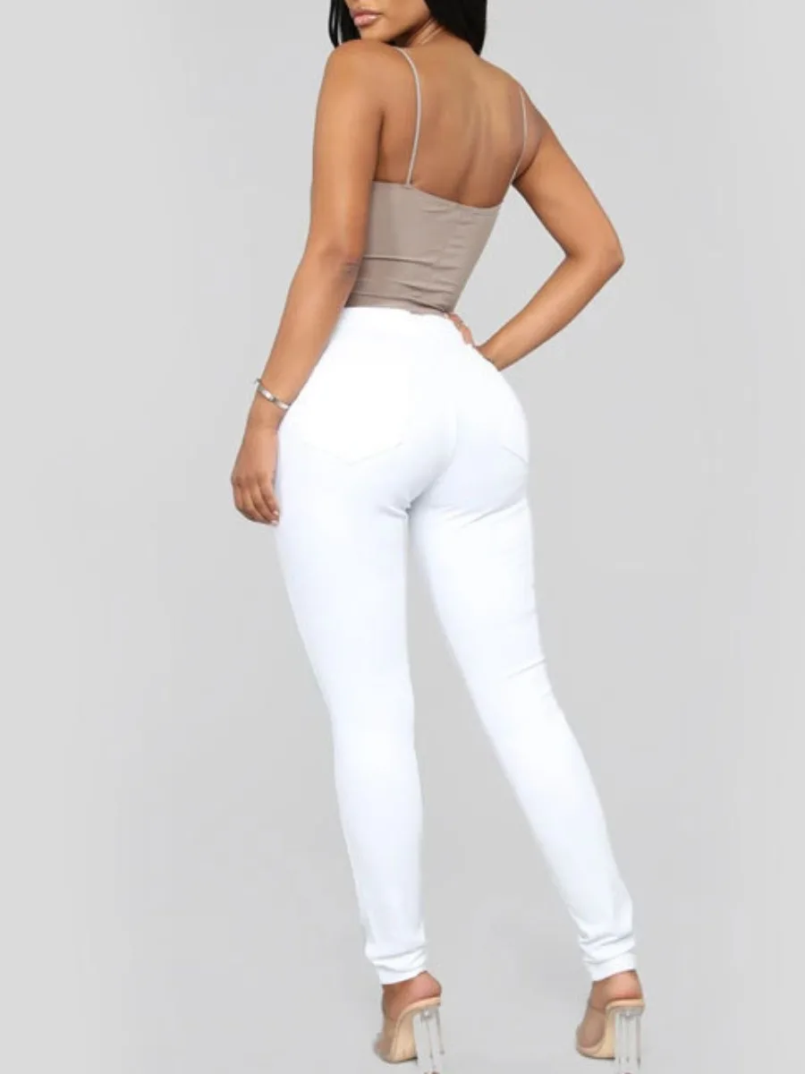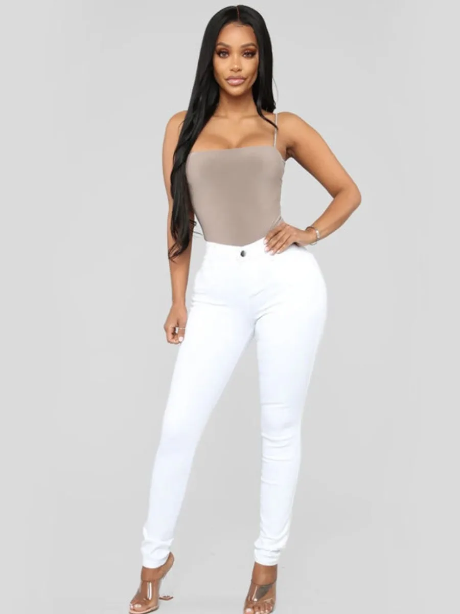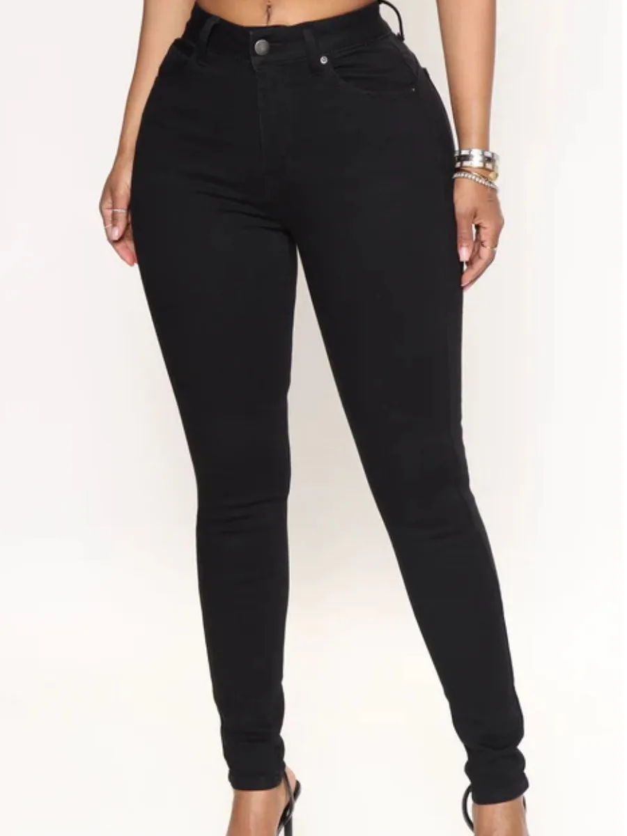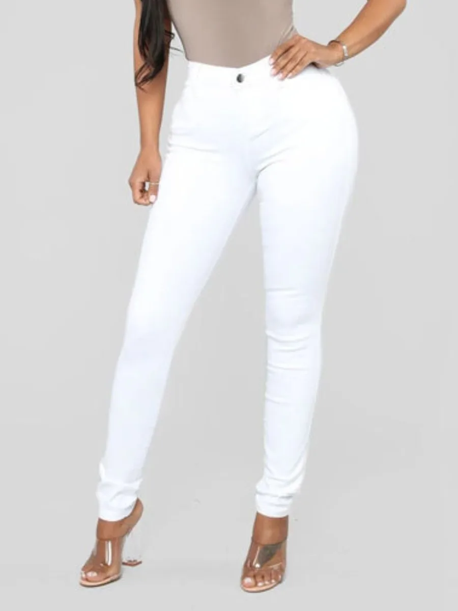 LW Basic Denim Mid Waist Skinny High Stretchy Jeans Booty Lifting Zipper Fly Pencil Pants Solid Color Women Slim Trousers