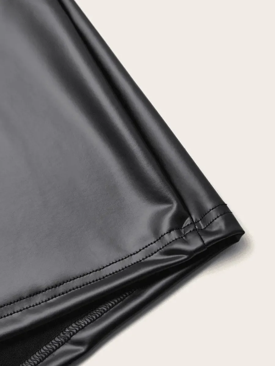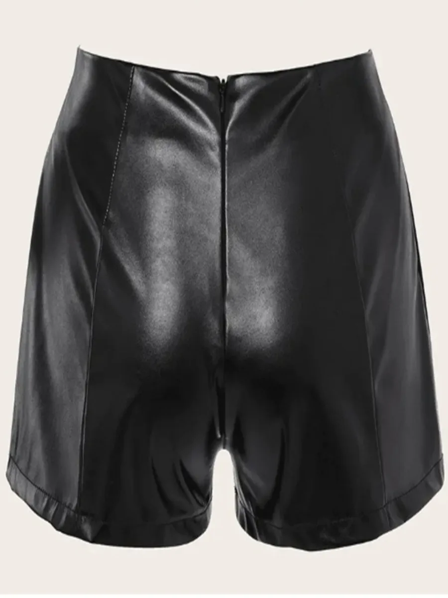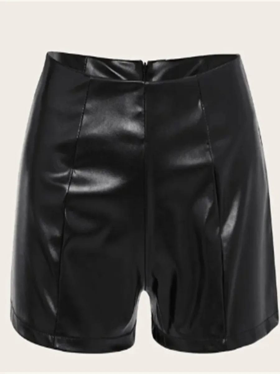 LW Basic High Waist Stretchy Shorts PU Straight Leg Sexy Solid Skinny Elastic-waist Leather Night Clubwear Women Trendy Pants