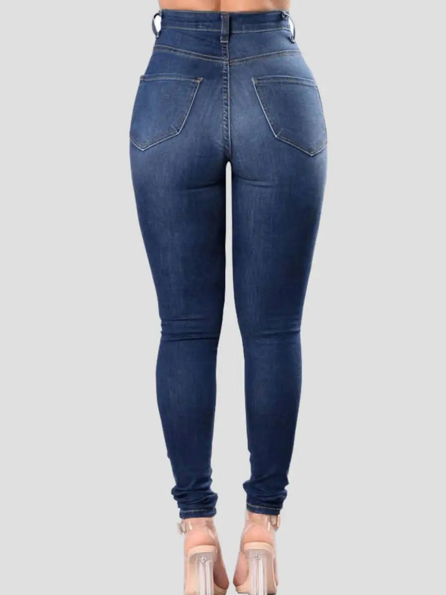 LW High Stretchy High-Waist Raw Edge Ripped Jeans Pencil Pants For Women Skinny Solid Color Fashion Streetwears(3 Colors)