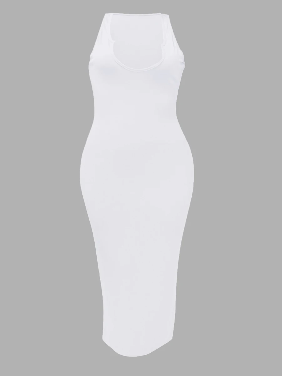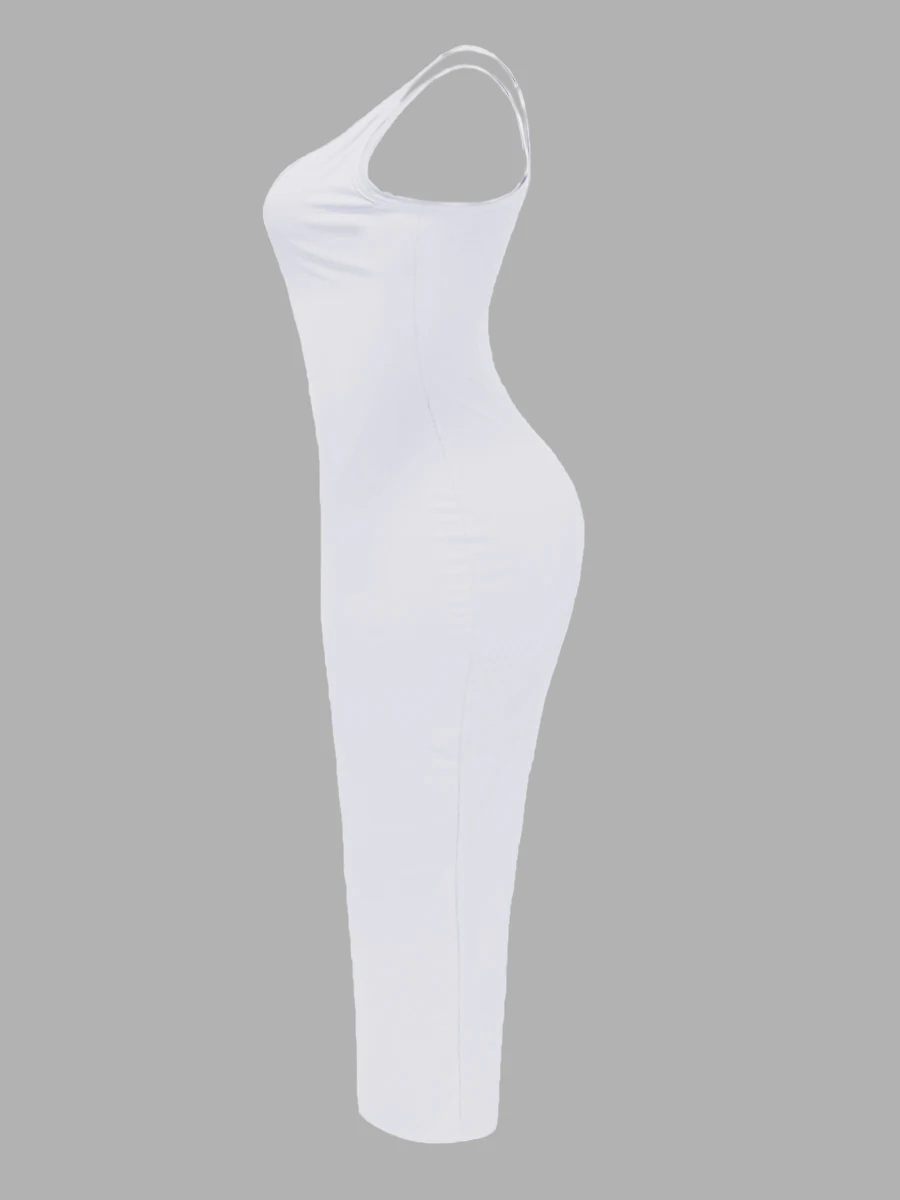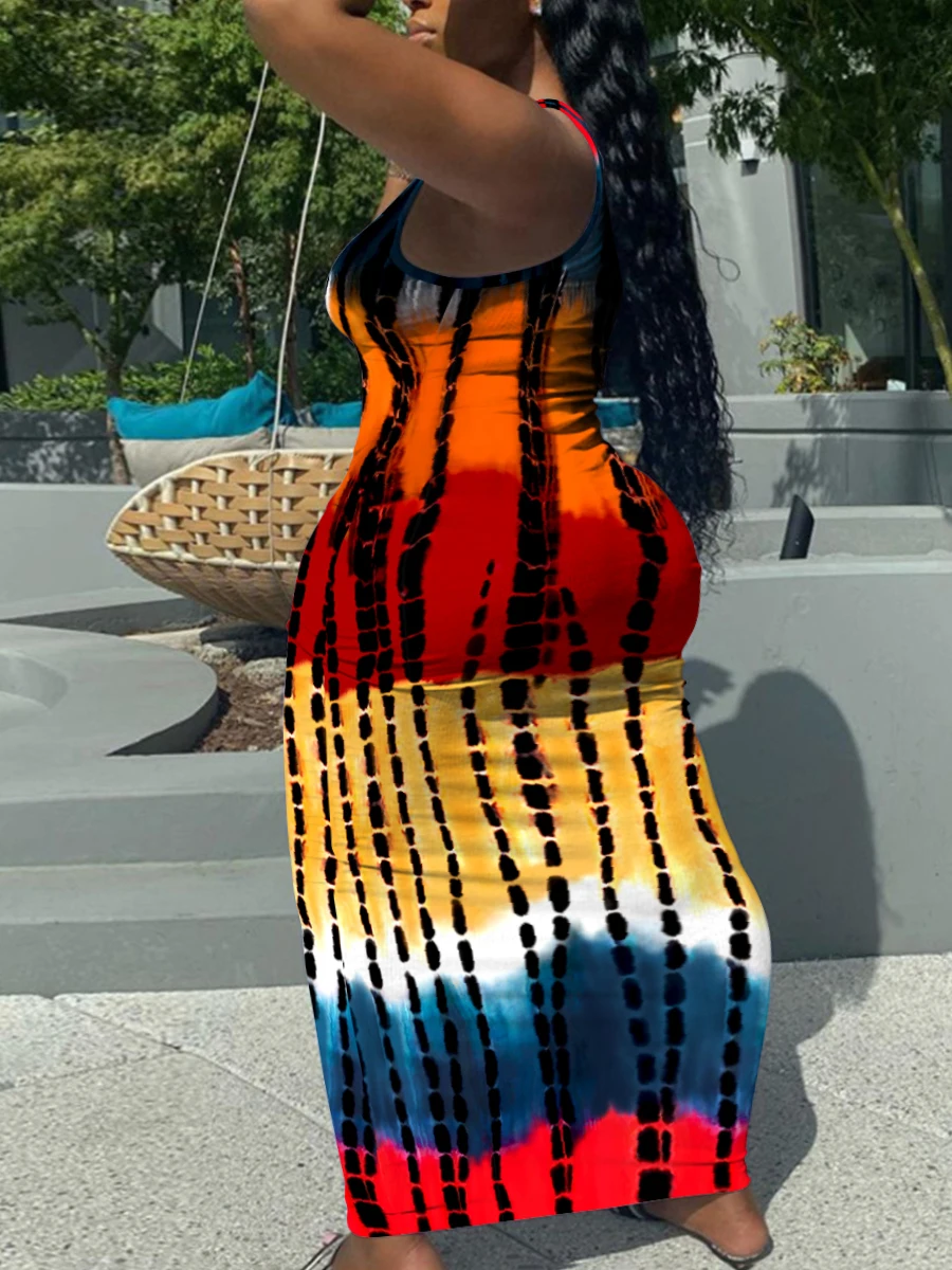 LW Plus Size Dress Street Lip Letter Print Red Ankle Length Sporty Sleeveless Tank V Neck Sheath Summer Outfits Women Clothing