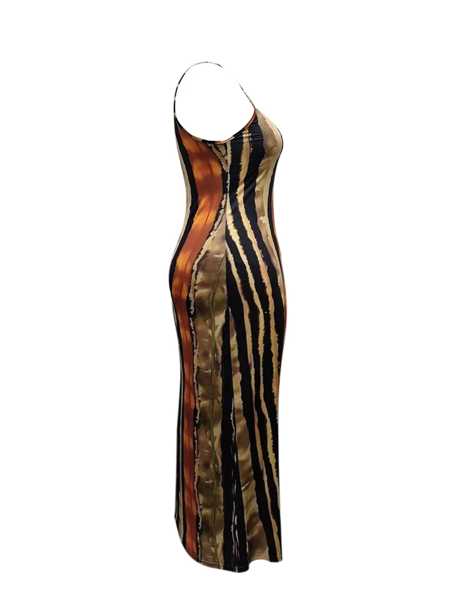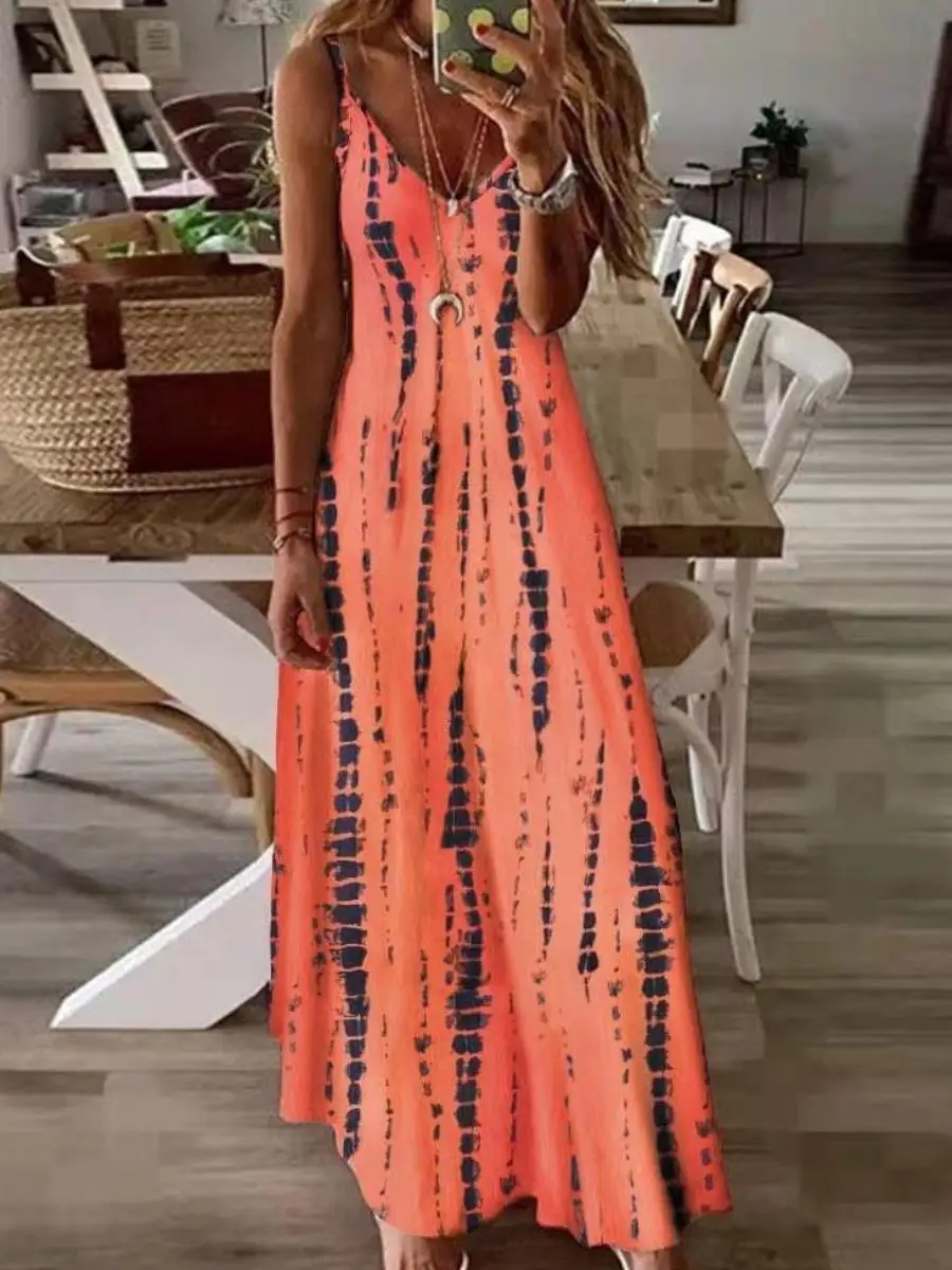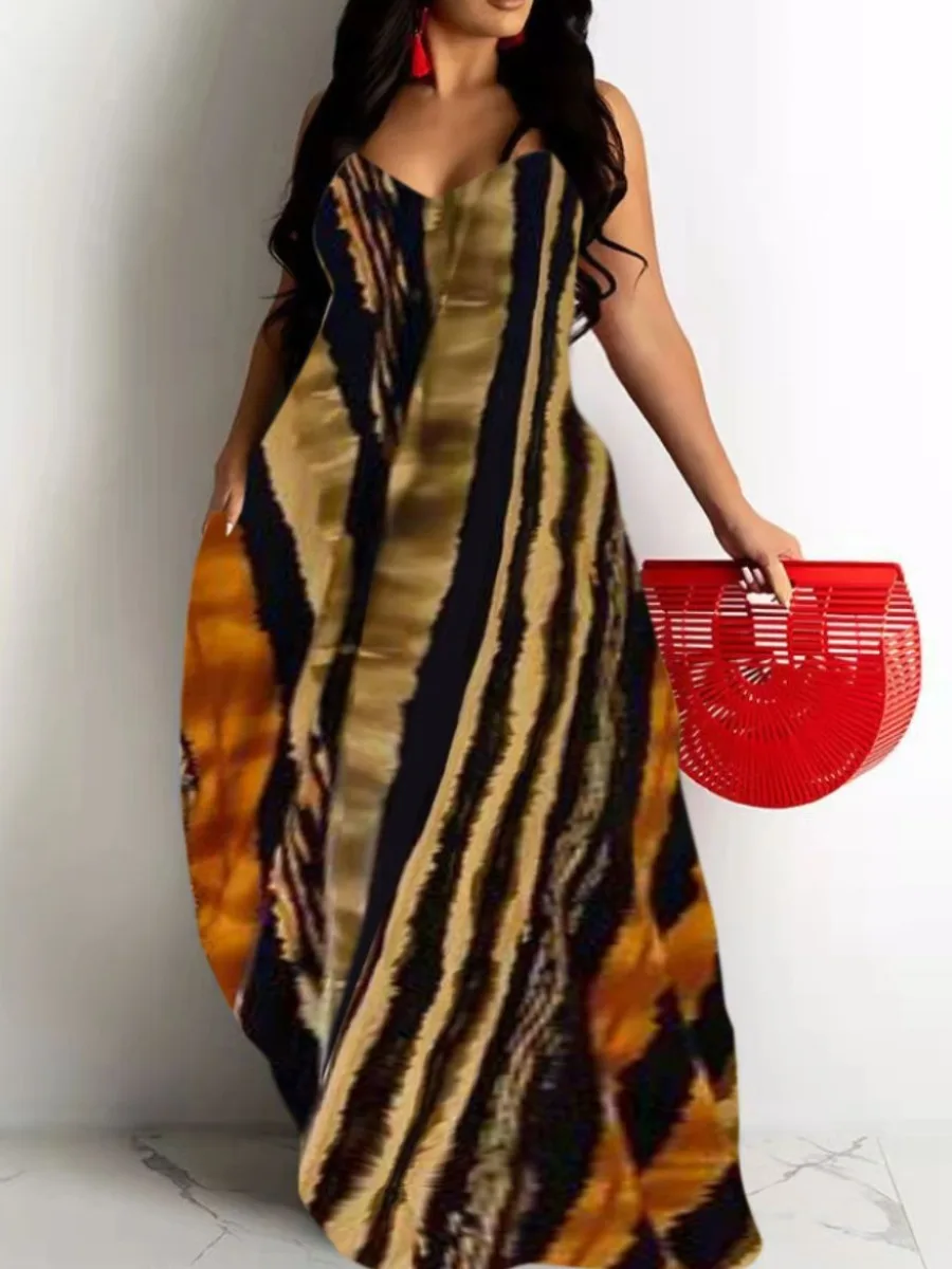 LW Plus Size Dress Tie-dye Striped Cami Loose Stretchy Sleeveless Halter Summer Women Clothings Cleavage Female Vestidos