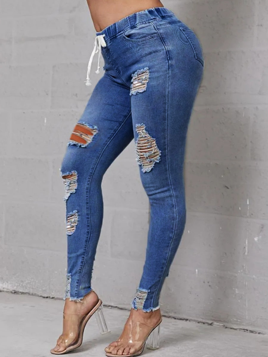 LW Plus Size Jeans High-Waist High Stretchy Ripped Distressed Jeans Classic Elastic Waist Solid cut hole women's Pants