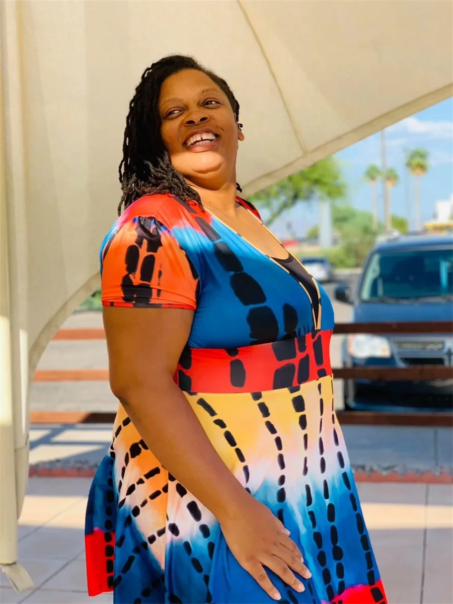LW Plus Size summer Mini Dress 2023 NEW Tie-dye Flounce Design Deep V Neck A Line Full Print Summer Fashion party dress Vestidos