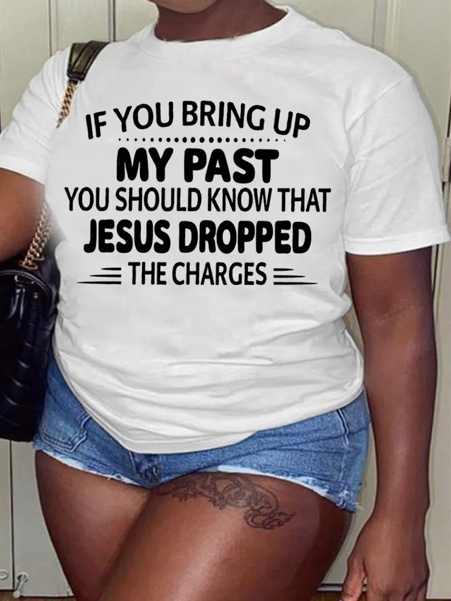 LW Plus Size Woman Casual Clothes My Past Letter Print Short Sleeve Round Neck T-shirt