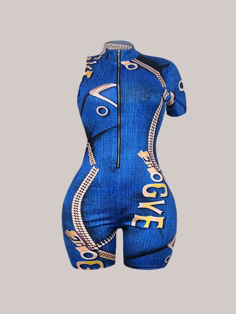LW Plus Size Women Clothing Letter Print Zipper Design Stretchy Romper shorts jumpsuit 2022