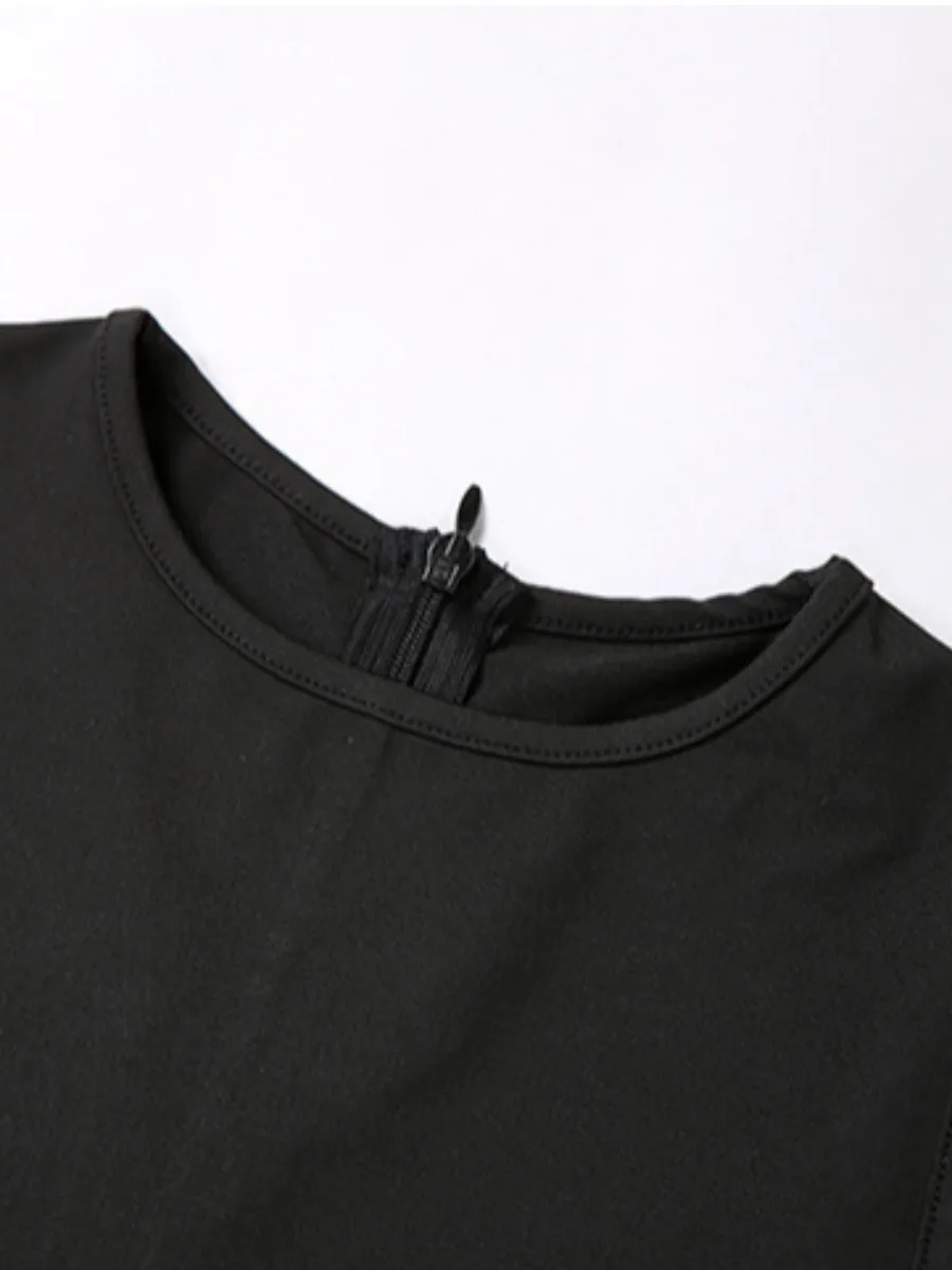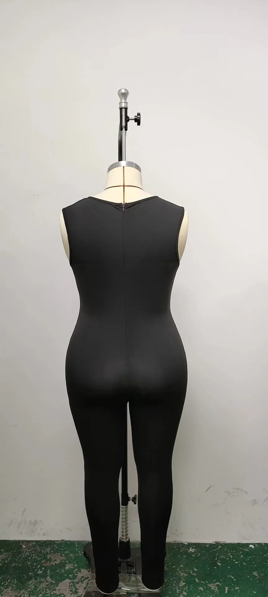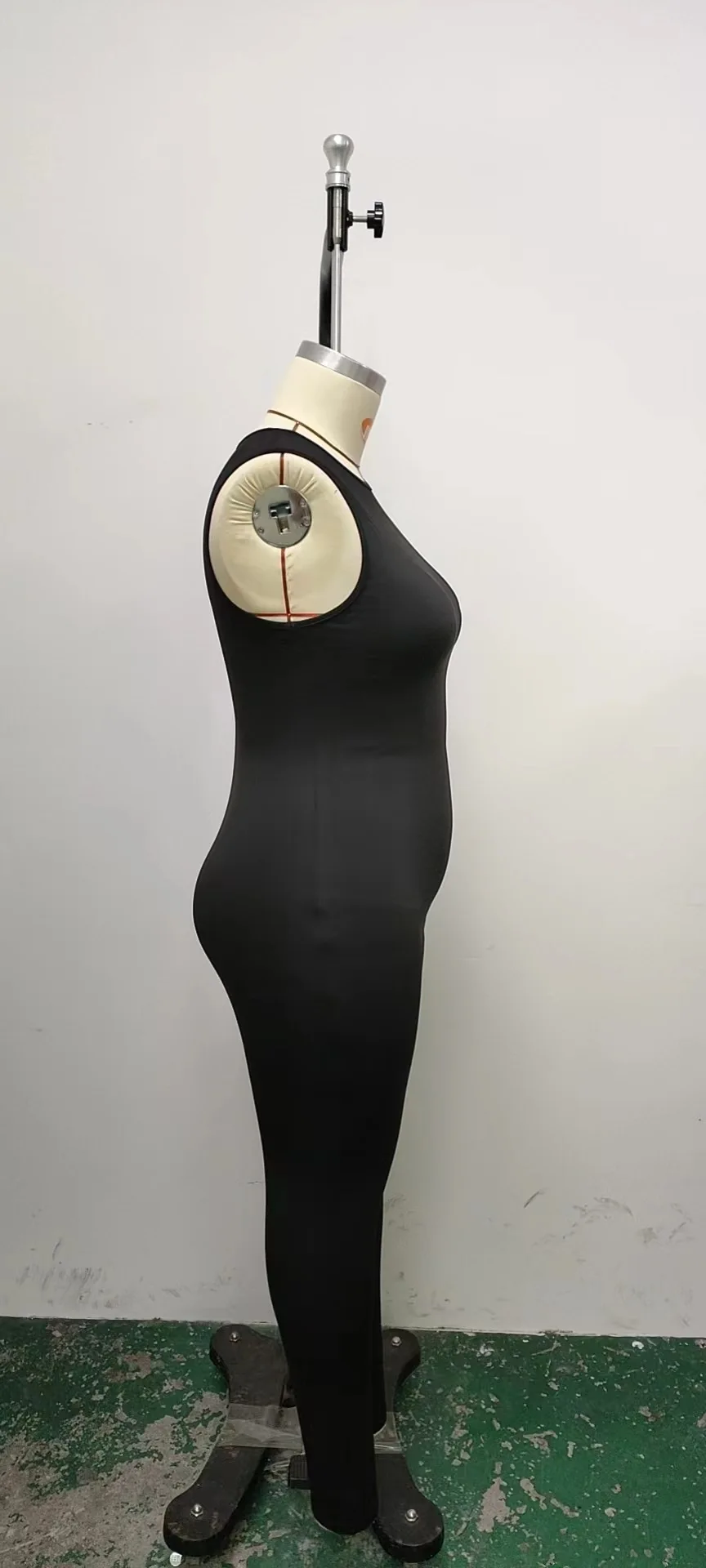 LW Plus Size Women Clothing One Piece Body-shaping Zipper Rompers Round Neck Stretchy Black Skinny Sleeveless Sexy Jumpsuit