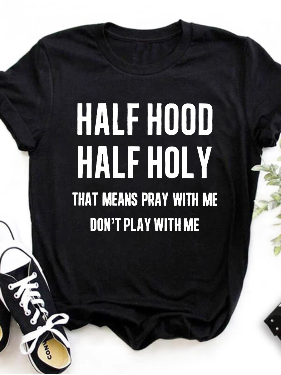 LW Plus Size Women Clothing Tops Summer Outfits Half Hood Letter Print Round Neck T-shirt