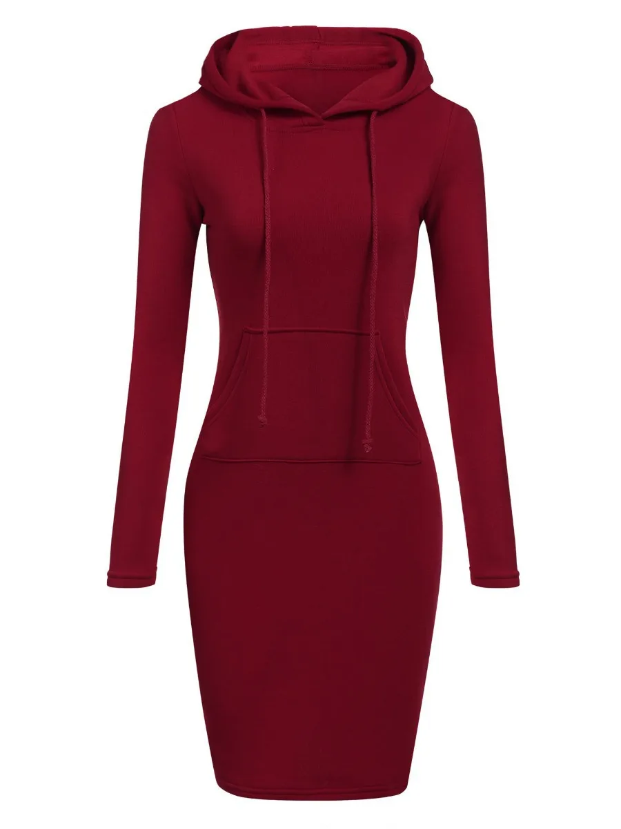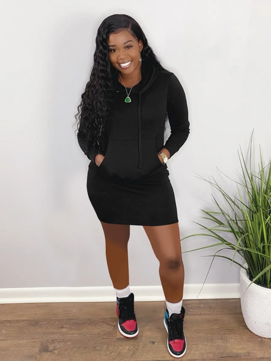 LW Plus Size Women Long Sleeve Hoodie Dress Hooded Collar Kangaroo Pocket Sweat XL-5XL Maxi Solid Color Bodycon Lady Clothings