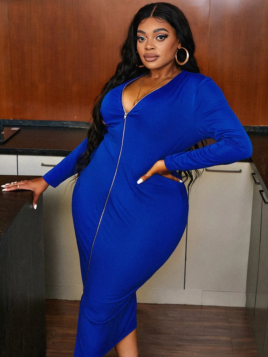 LW Plus Size Zipper Design Basic Bodycon Dress Spring new large size Long Sleeve Patchwork Bodycon dress Female Fashion Clothes