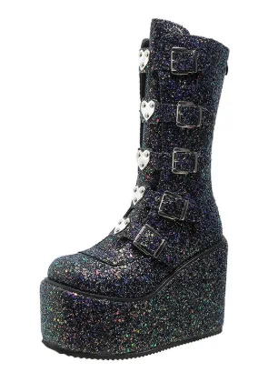 Plus Size 43 Black Gothic Vampire Halloween Cosplay Punk Buckle Street Platform Wedge High Heel Boots Women Shoes 2023